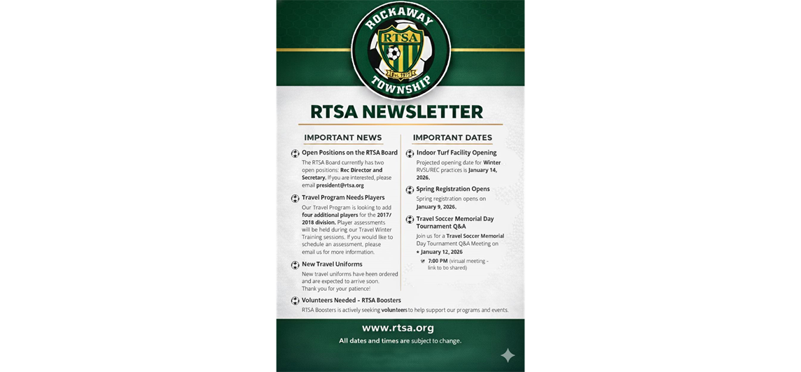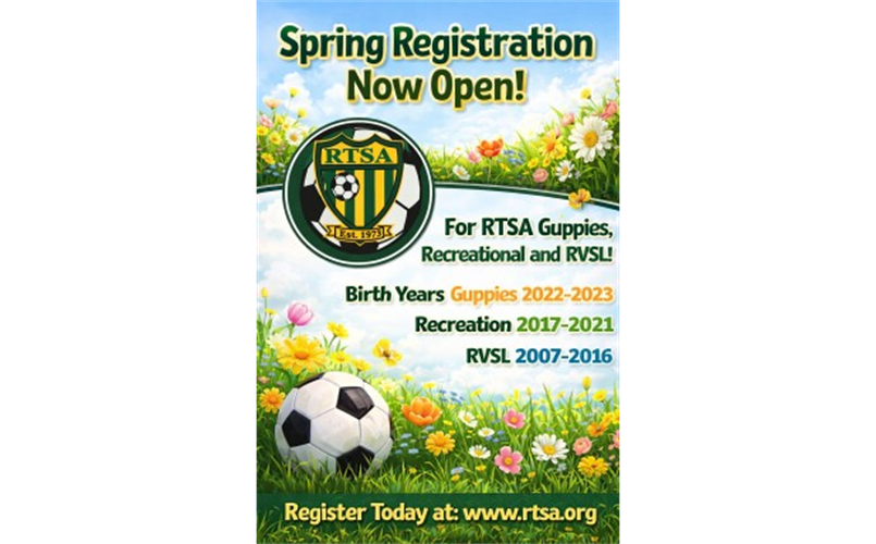 Hello RTSA Families,Spring Registration is now open for RTSA Guppies, Recreational, and RVSL soccer programs!